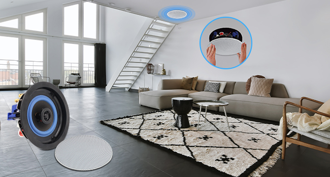 Includes a cut-out size template and quick connect spring-loaded speaker terminals for simple, easy, no hassle installation, in any room, delivering a full rich sound without cluttering floor space